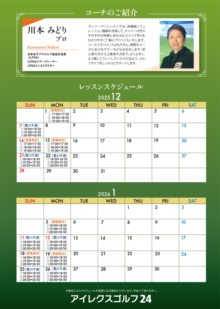 川本みどりプロのレッスンのご案内