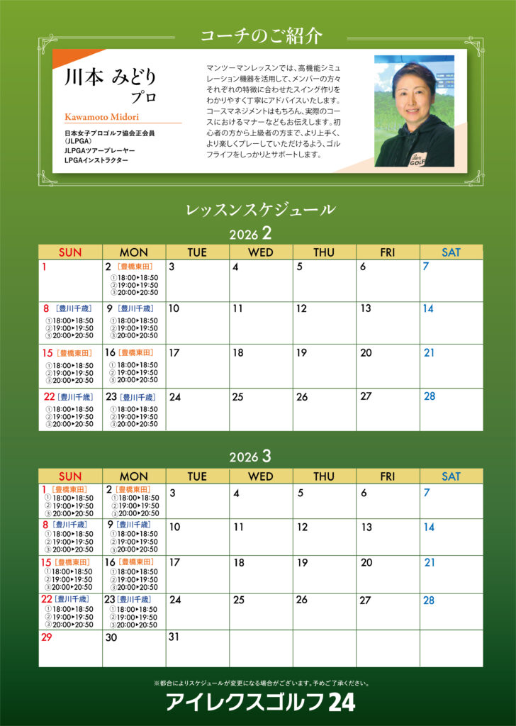 *プロの都合により、レッスンスケジュールが変更になる場合がございます。